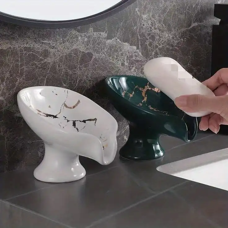 This stylish ceramic dish is perfect for holding your soap. The elegant marble print adds a touch of sophistication to your bathroom. Keep your soap dry and organized with this durable and functional dish.